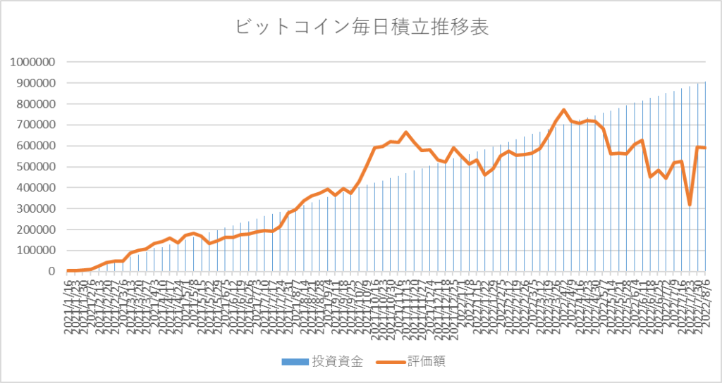 ビットコイン(BTC) 毎日積立運用実績